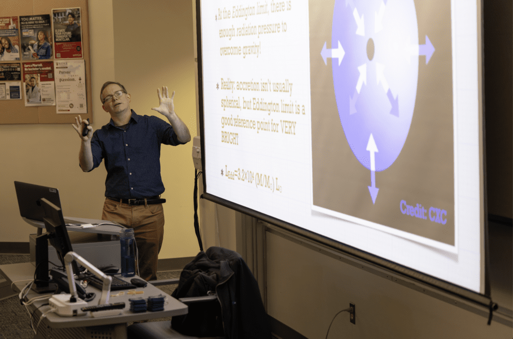 Hosted in collaboration with the New Jersey Space Grant Consortium, the talk, Extremes in Astrophysics, explored the fascinating and complex worlds of black holes and neutron stars. Dr. Neilsen translated some of the universe’s most extreme phenomena into an engaging and accessible experience, connecting advanced research with concepts students encounter in the classroom. Although black holes cannot be seen directly, scientists study them by observing how their immense gravity affects surrounding matter and light.
