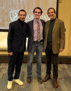 The program then shifted to a live demonstration, featuring two Brookdale alumni: Dominic Sama and Montez Swartz. Facilitated by Schneider, the pair modeled the EDD process on stage, using universal basic income as their discussion topic.