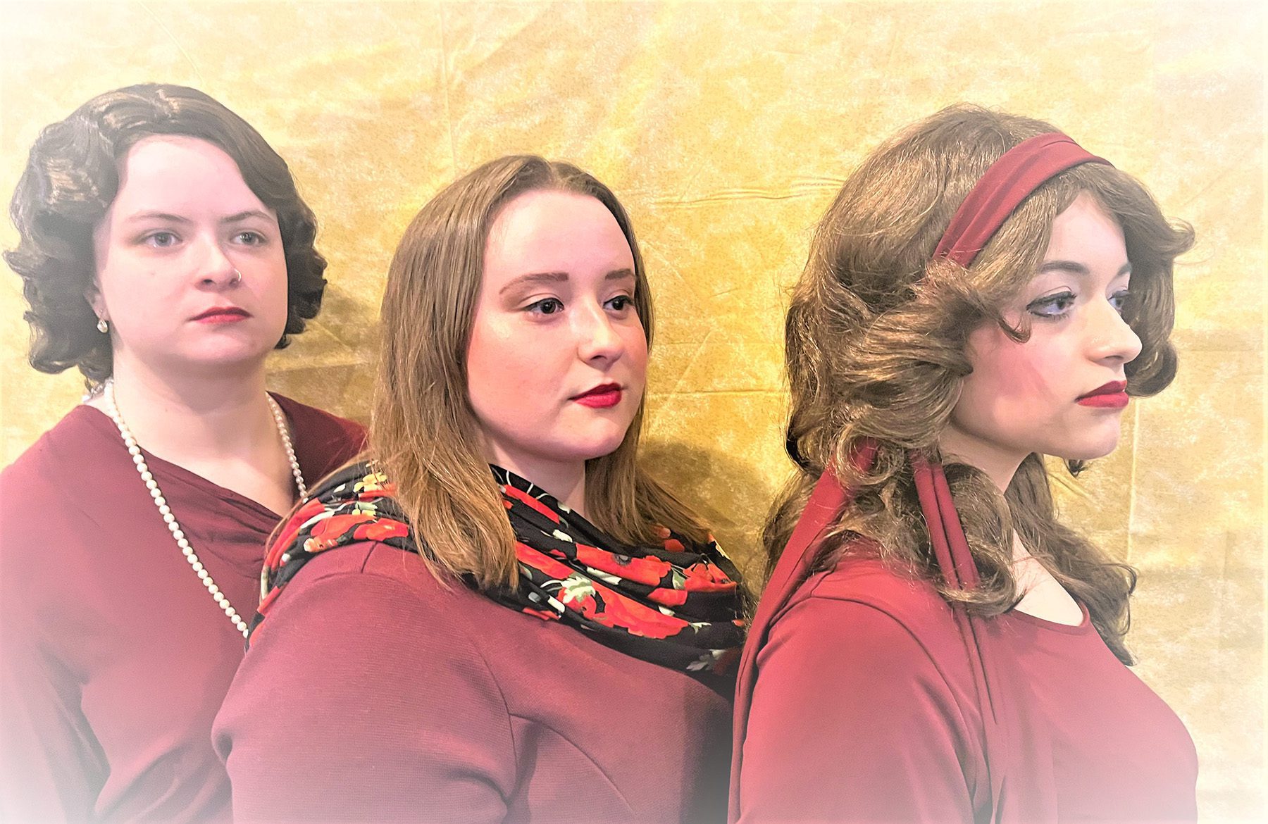 Hailey VanSickle as Nora 3, Francesca Muffoletto as Nora 1 and Valeria Faltawws as Nora 2. PARAMUS, N.J. – The Bergenstages theatre troupe will perform “Nora: A Doll’s House,” by Stef