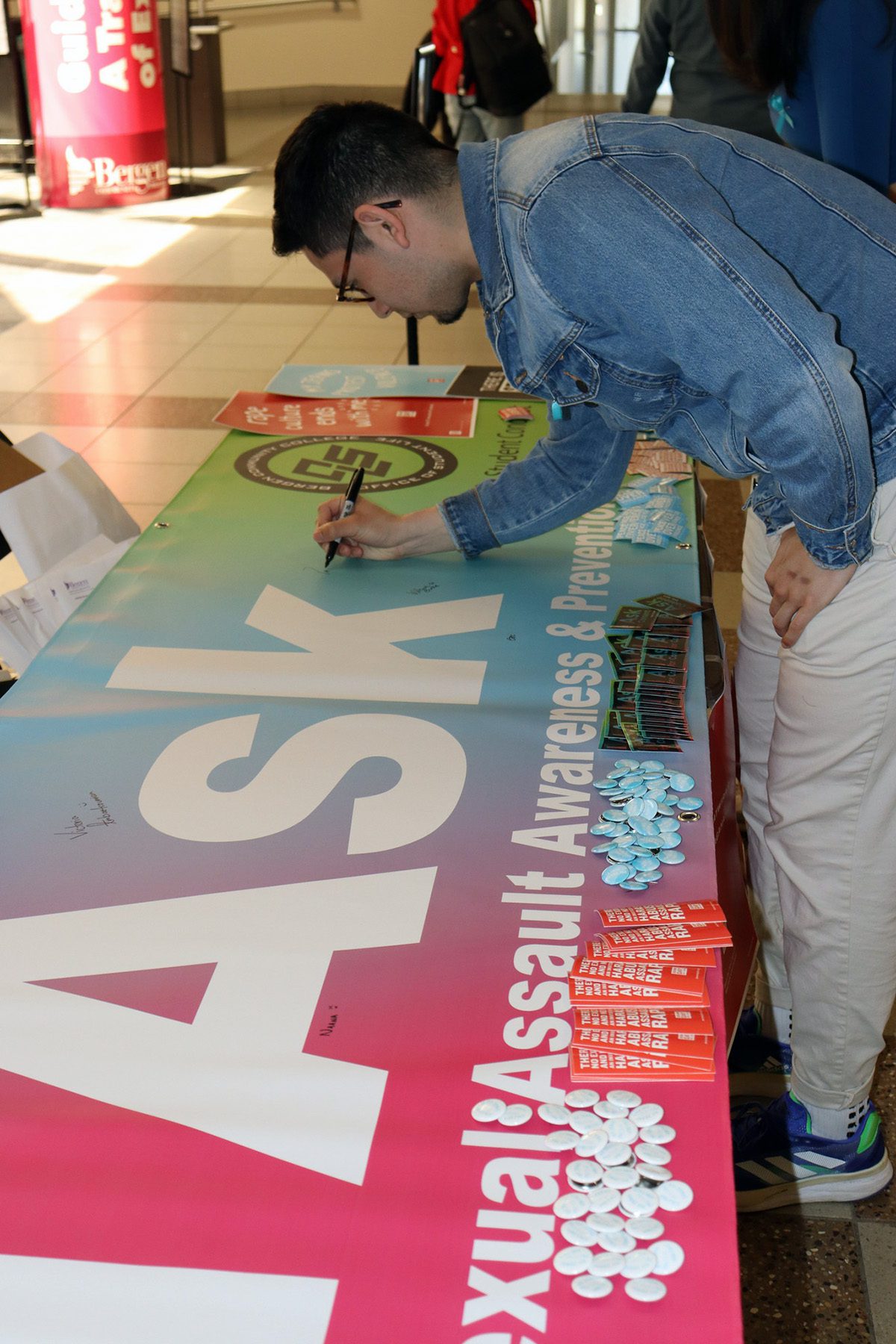 Bergen Community College students contributed their signatures in support of victims of sexual violence as part of the institution’s annual
