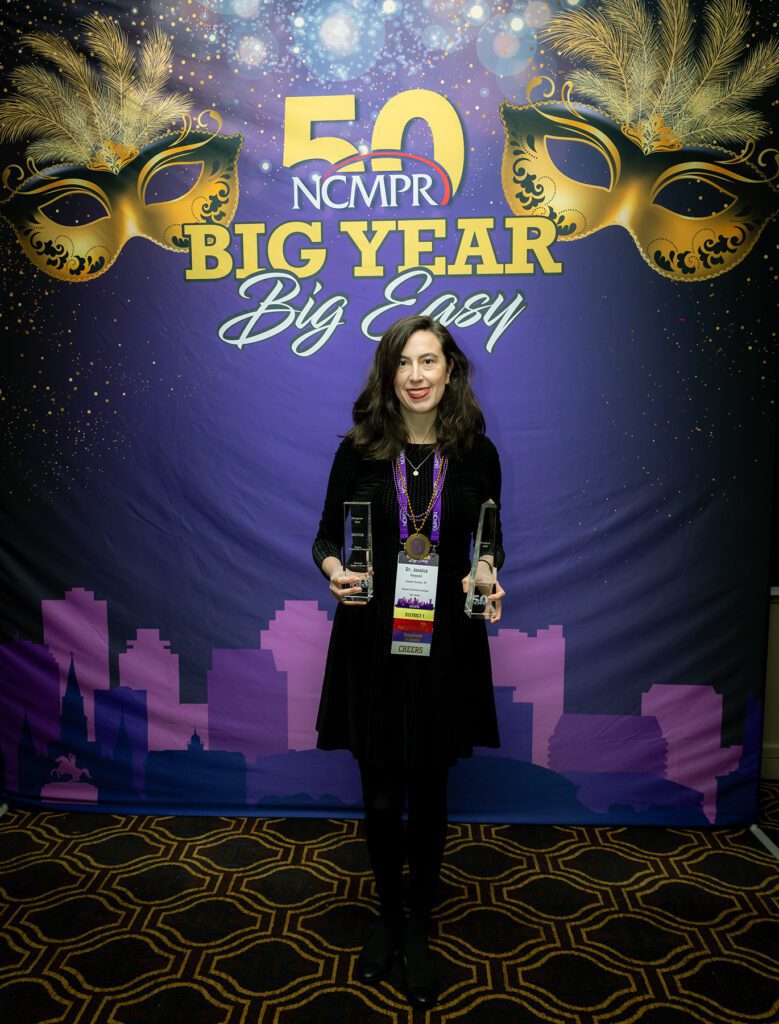 Bergen Assistant Director of Public Relations Jessica Fargnoli, Ed.D., accepted two Paragon awards on behalf of the College. PARAMUS, N.J.